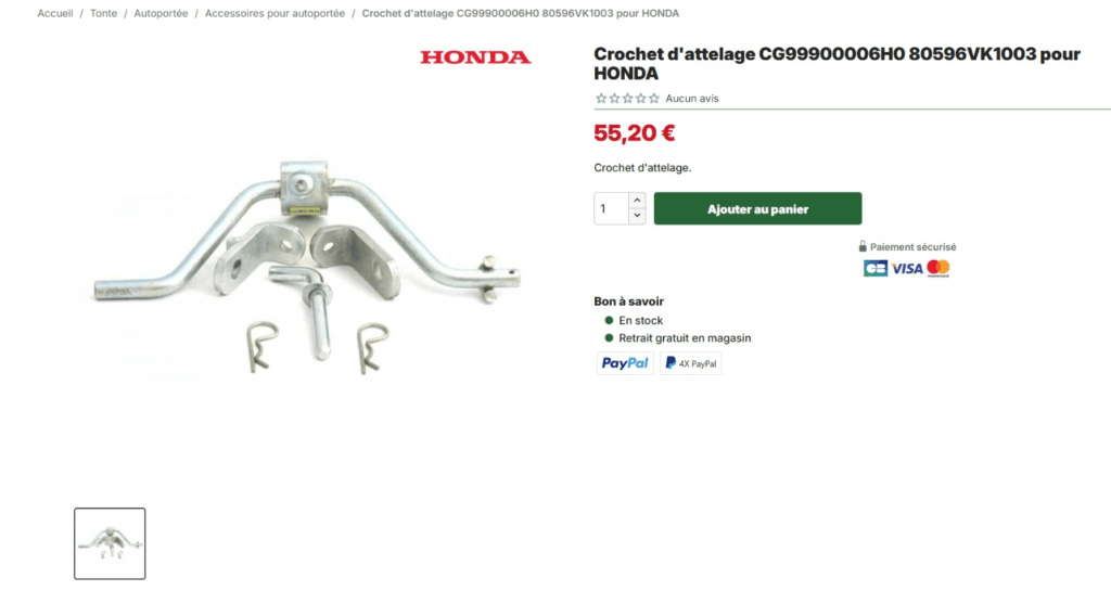Pour les personnes concernées souhaitant équiper leur tondeuse autoportée Honda d’un point d’attelage (certains avec un axe et certains avec une boule) à la place du bac de ramassage : ci-dessus un exemple de crochet d’attelage.