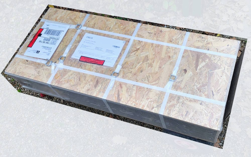 Les bidons de 20L (lestage recommandé) ne sont pas fournis ; ils peuvent souvent être récupérés en déchetterie ou dans le commerce ; leur dimensions peuvent varier mais sont typiquement de l’ordre de 22 cm largeur x 25 cm longueur x 42 cm hauteur : prévoir d’en récupérer 2 dès avant réception du colis, pour pouvoir tester la machine sans délai.