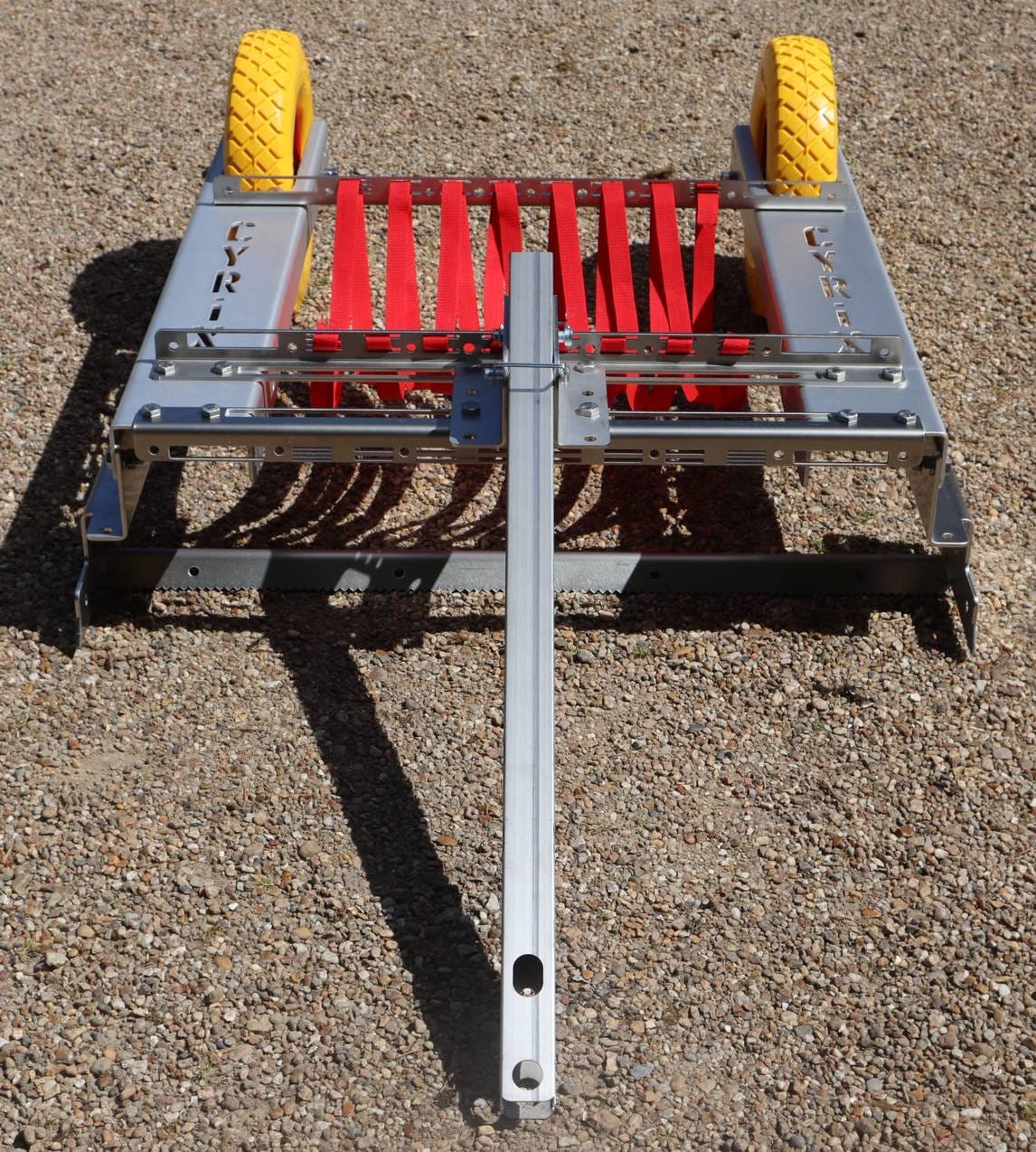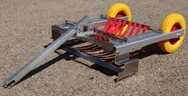 Désherbeur mécanique tracté pour surfaces en gravier. Version de base (sans tête de lapin pour boule attelage, sans herse). Prix TTC livraison incluse.